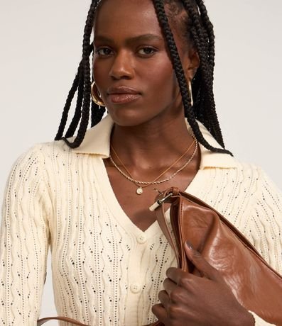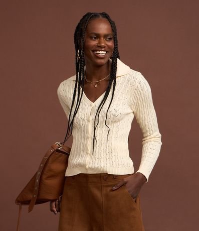 Blusa em Tricô com Gola Polo e Textura