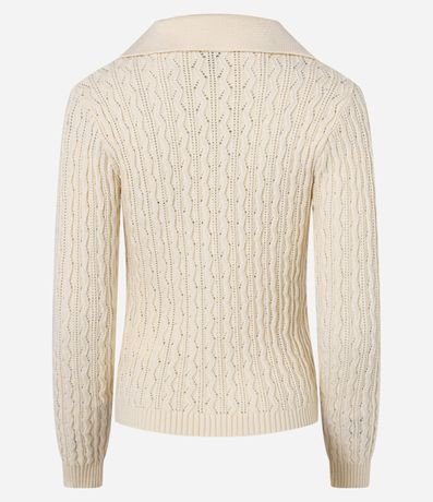 Blusa manga longa, confeccionada em tricô leve em boas práticas ambientais, decote v com golinha polo e abotoamento frontal.