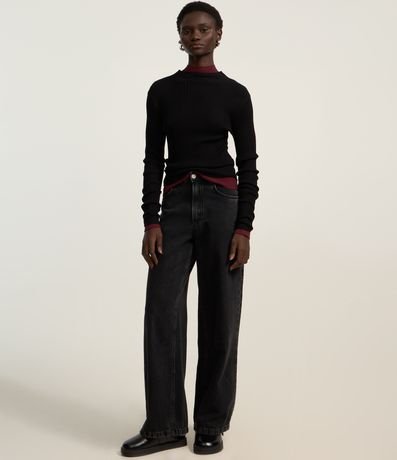 Blusa confeccionada em tricô com golinha alta e manga longa.