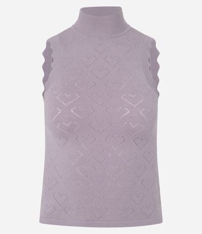 Ref: Blusa com golinha alta, sem manga com ondinhas na cava e textura de corações.
