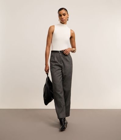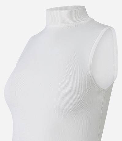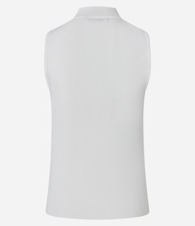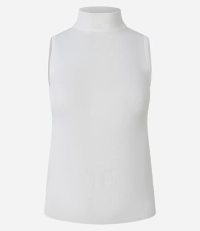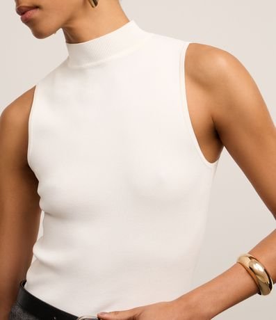 Ref: Blusa feminina, confeccionada em tricô, com golinha alta, sem manga, textura canelada e superfície sem estampa.