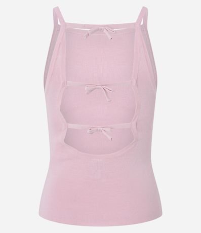 Ref: Blusa sem mangas confeccionada em tricô de viscose mais sustentável. O charme da peça está no recorte nas costas com topinhos.