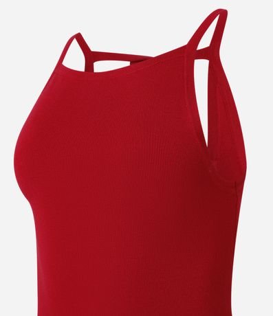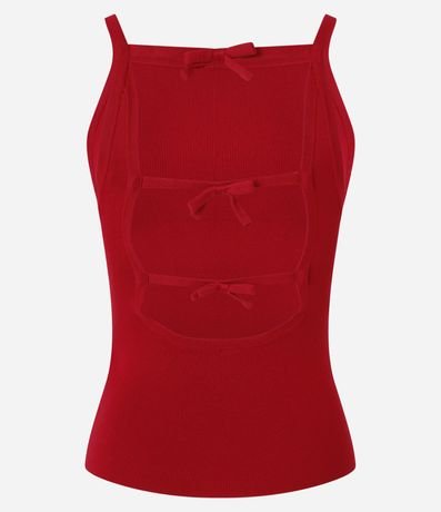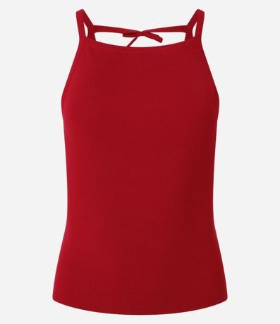 Ref: Blusa sem mangas confeccionada em tricô de viscose mais sustentável. O charme da peça está no recorte nas costas com topinhos.