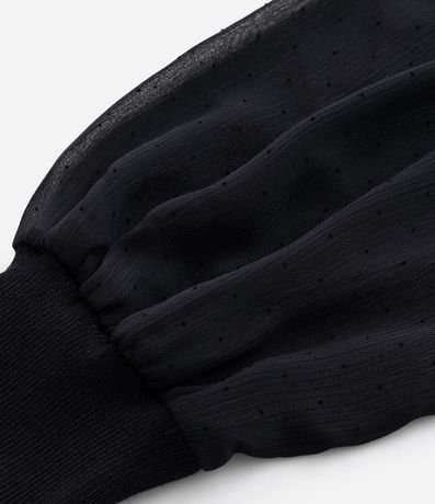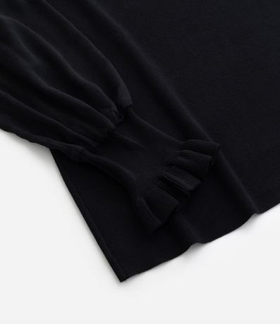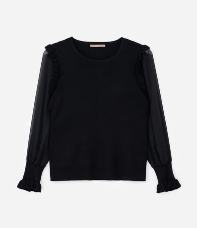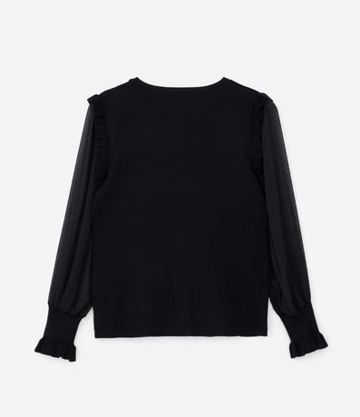 Blusa em tricô com gola redonda, manga longa em chiffon, detalhe de babado e sem estampa.