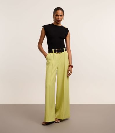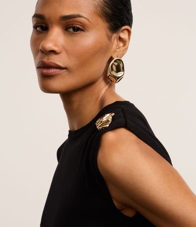 Ref: Blusa sem mangas, confeccionado em tricô, com gola redonda e detalhe metalizado em um dos ombros. Blusa com ombreiras. Este produto possui viscose certificada em sua composição, sendo ambientalmente mais responsável.