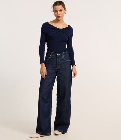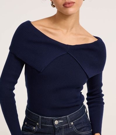 Ref: Blusa manga longa, confeccionada em tricô leve e produzida em boas práticas ambientais, pala dobrada e recorte em v.