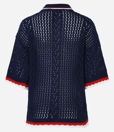 Blusa em Tricô com Ponto Aberto e Listra Contrastante