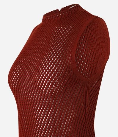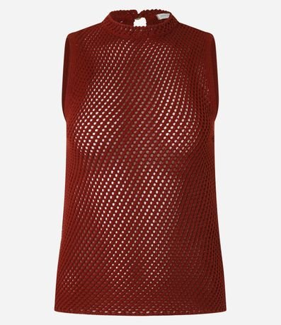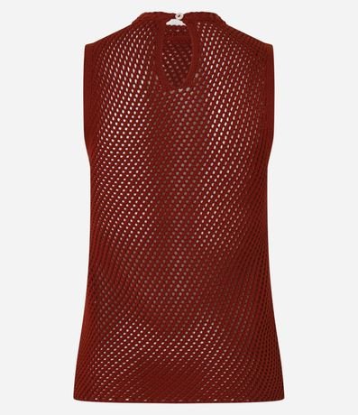 Blusa feminina sem mangas, com gola redonda confeccionada em efeito tricô com ponto aberto e transparência sofisticada.
