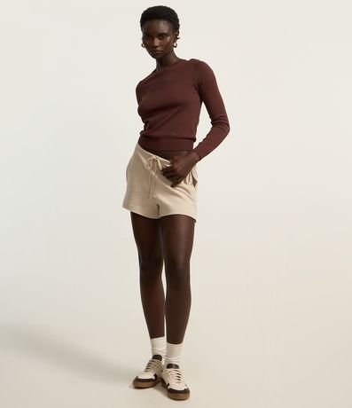 Ref: Blusa manga longa, confeccionada em tricô leve com viscose certificada, sem estampa e barra punho.