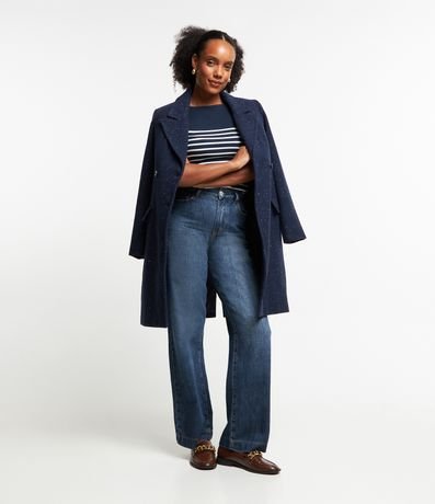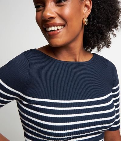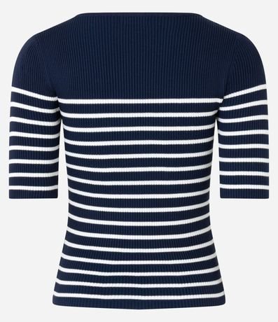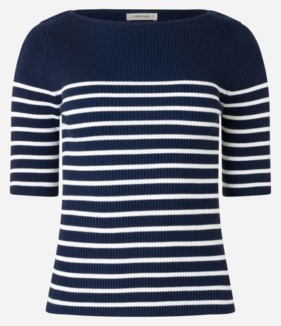 Blusa em Tricõ com Textura Canelada e Estampa Listrada
