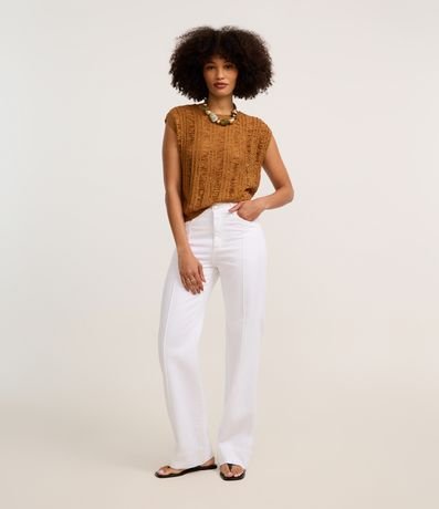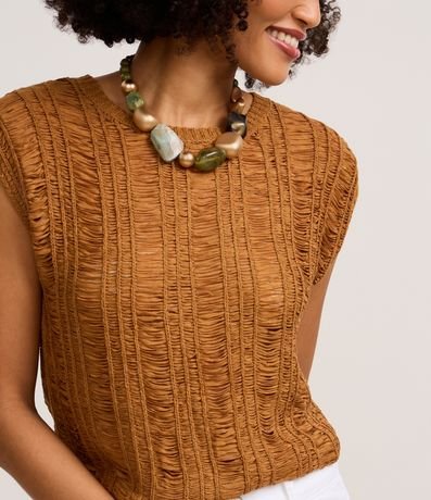 Ref: Blusa sem mangas, confeccionada em tricô, com gola redonda e textura diferenciada. Peça conta com um aspecto artesanal que remete à ráfia.