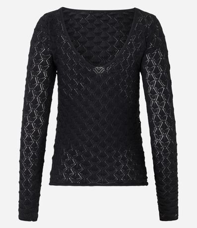 Blusa em Tricô com Textura Padronagem Geométrica