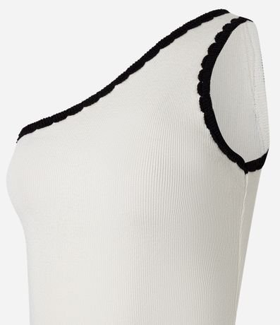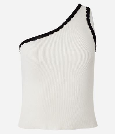 Ref: Blusa com decote um ombro só, alça larga, confeccionada em tricõ leve e com viés contrastante na cava e decote.