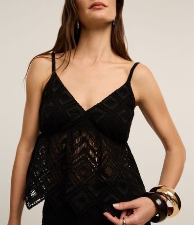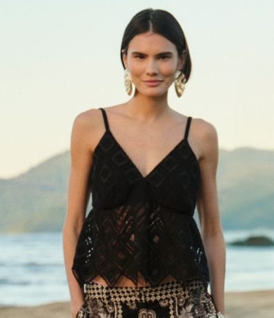Ref: Blusa de alcinha regulável, confeccionada em tricô com algodão bci mais sustentável, forro no busto e ponto vazado na cintura.