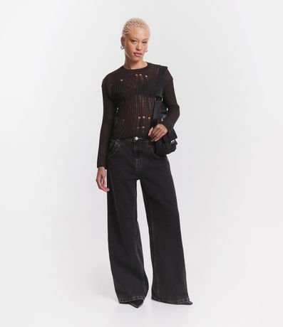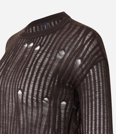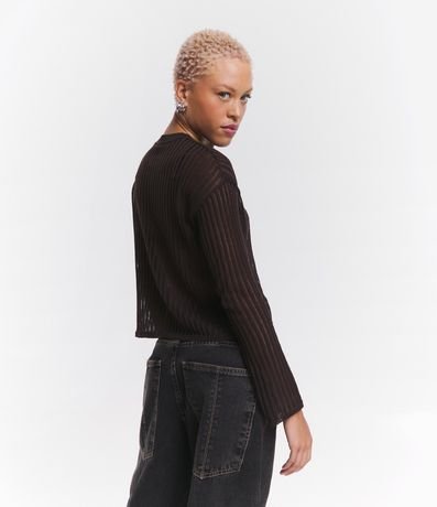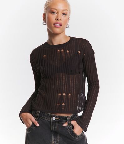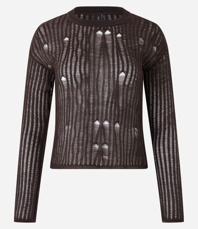 Ref: Blusa manga longa, confeccionada em tricô leve com detalhes furadinhos.