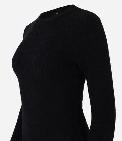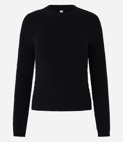 Ref: Blusa feminina, confeccionada em tricô leve, com composição de viscose certificada. A peça também conta com gola redonda e textura zigzag.