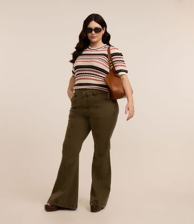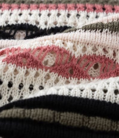 Ref: Blusa confeccionada em tricô leve de algodão mais sustentável. A blusa tem gola redonda, mangas curtas e listras coloridas diferenciadas.
