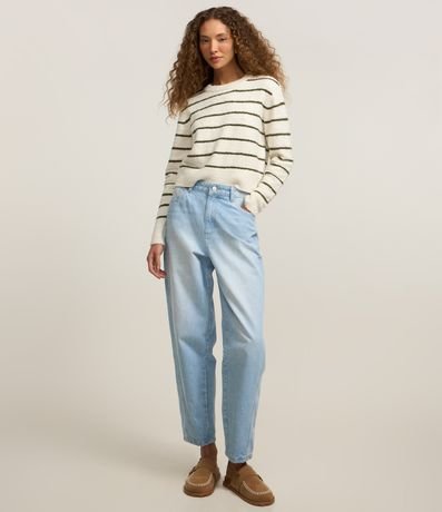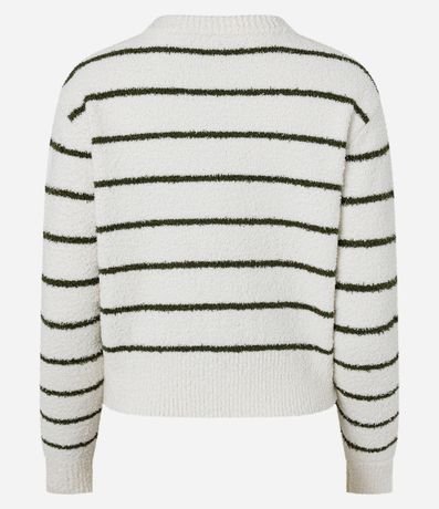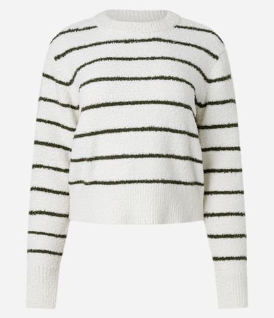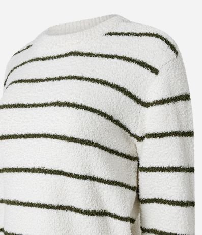 Ref: Blusa manga longa, confeccionada em tricô leve, textura peludinhas e com listras.