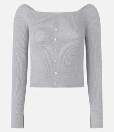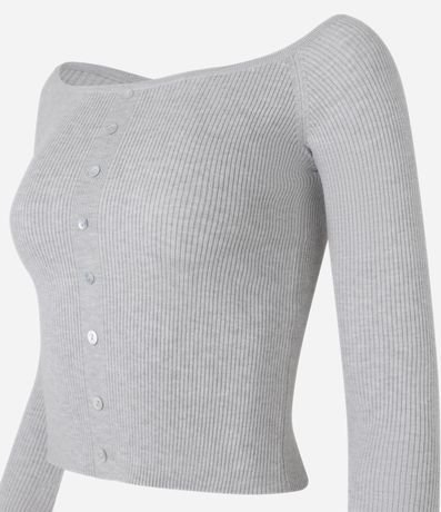 Blusa em Tricô Ombro a Ombro e Botõezinhos Frontais