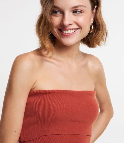 Blusa em Tricô Tomara que Caia e com Pala Virada