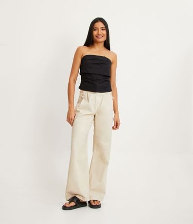 Ref: Blusa sem mangas em tricoline com franzidos. O decote tomara que caia todo sobreposto é o auge fashion do fit!