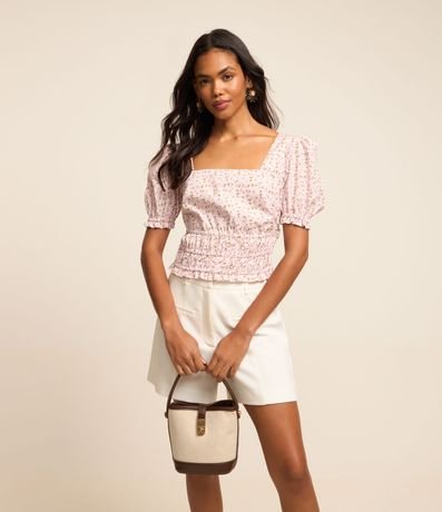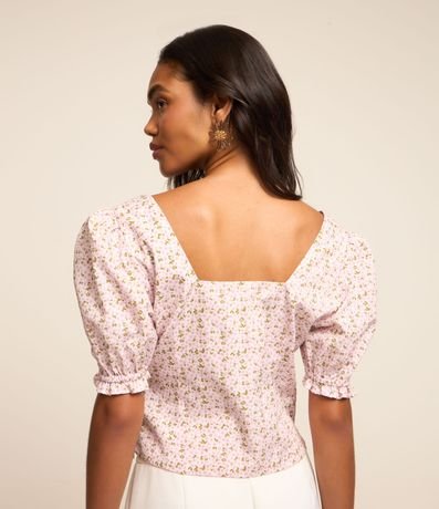 Blusa em Tricoline com Manga Bufante e Estampa Floral