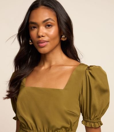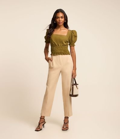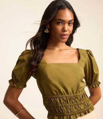 Blusa em Tricoline com Manga Bufante e Lastex na Base