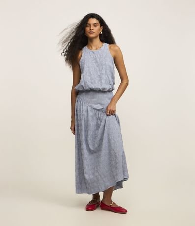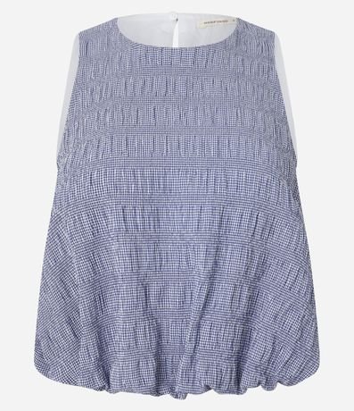 Ref: Blusa sem manga confeccionada em tricoline com fechamento por botão nas costas e estampa xadrez.