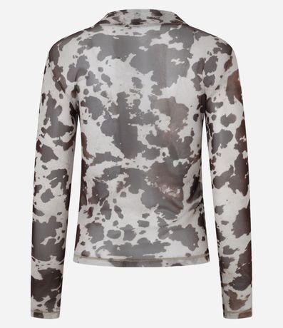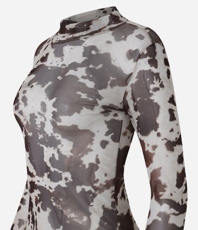 Ref: Blusa gola alta com manga longa, confeccionado em tule com estampa animal print vaquinha.