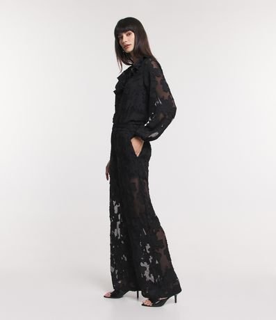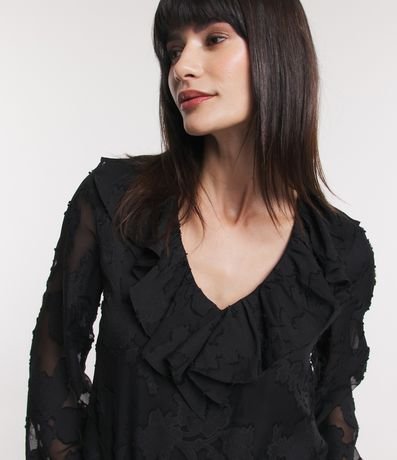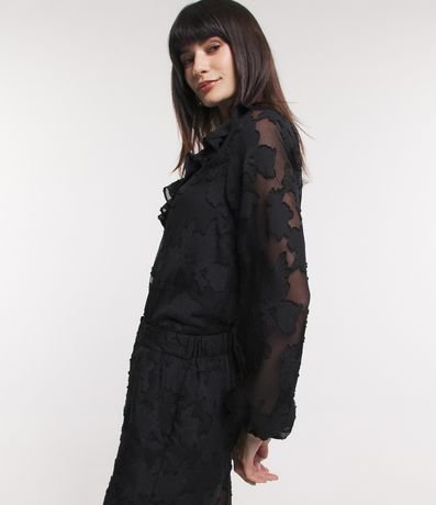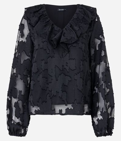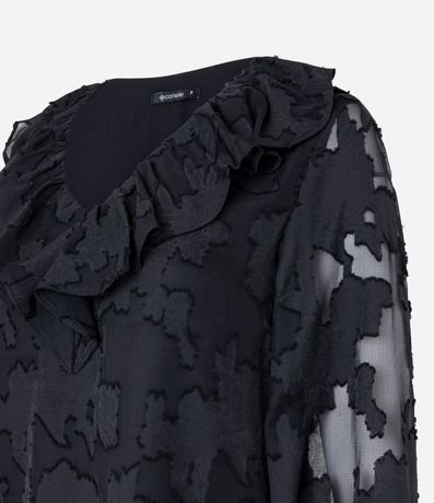 Blusa em Tule com Babado Jabô no Decote e Texturas