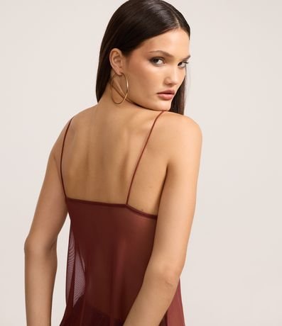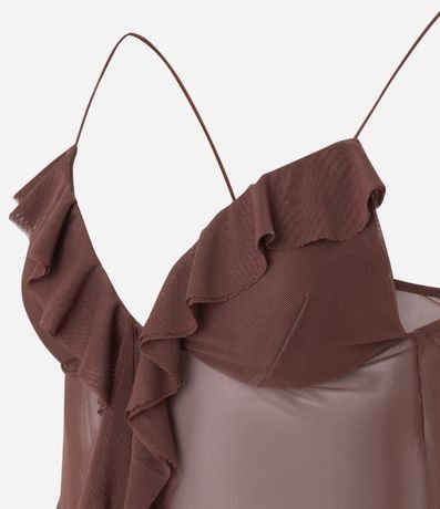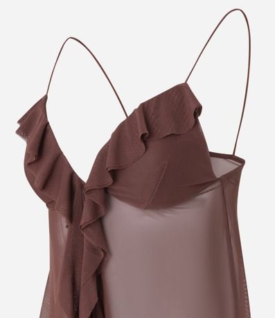 Blusa em Tule com Babado no Decote e Alças Finas