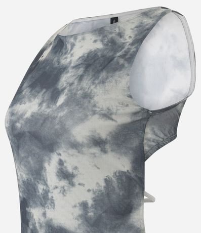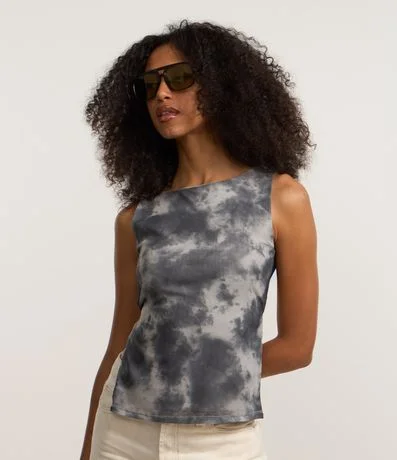 Blusa em Tule com Costas Abertas e Estampa Manchada