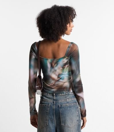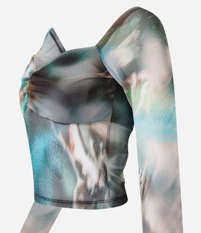 Blusa em Tule com Estampa Abstrata Manchada