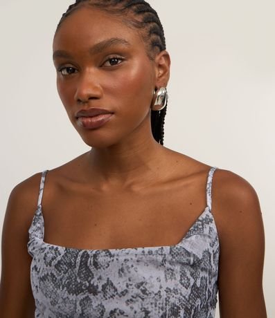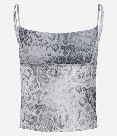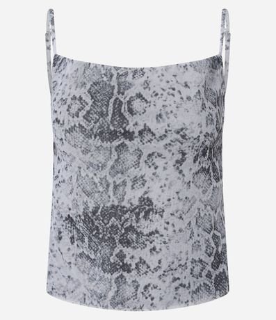 Blusa curta com alcinha fina regulável, decote degagê e estampa animal print.