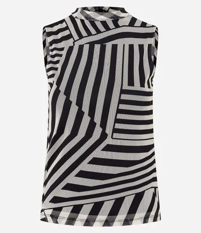 Blusa sem mangas, confeccionada em tule, com golinha alta e listras irregulares em recortes. Este produto foi fabricado através de processos mais sustentáveis, sendo ambientalmente mais responsável.