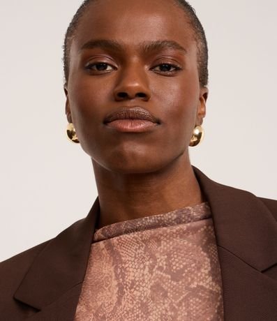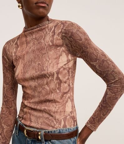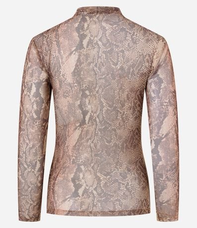 Ref: Blusa feminina confeccionada em tule, com golinha alta, mangas longas e estampa animal print de cobra.