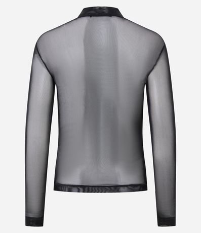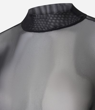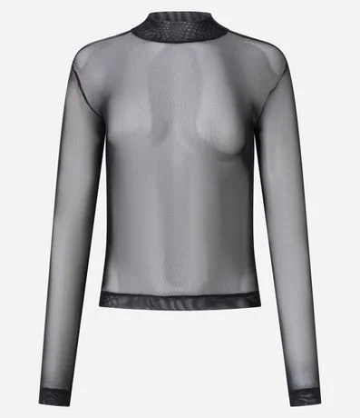 Ref: Blusa feminina em tule com transparência. Possui gola alta e mangas longas ajustadas. Ideal para compor looks em produções noturnas, sobreposições elegantes ou combinações fashion para festas e eventos casuais.