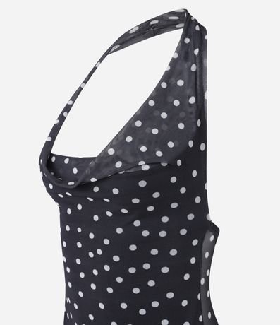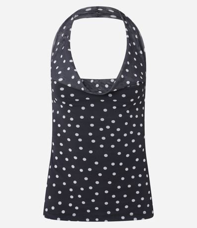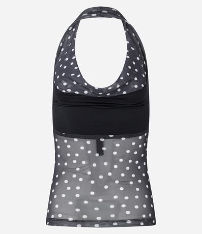Ref: Blusa frente única, confeccionada em tule com forro, babado e estampa poá.