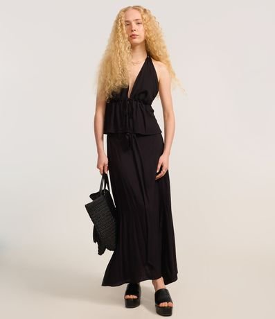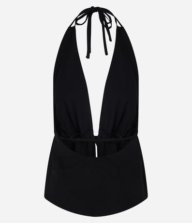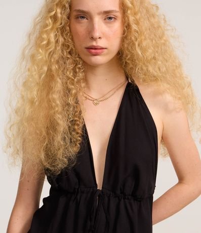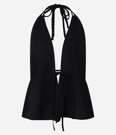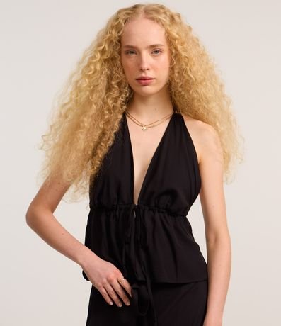 Ref: Blusa cortininha, frente única, confeccionada em viscose mais sustentável e amarração na parte de trás.