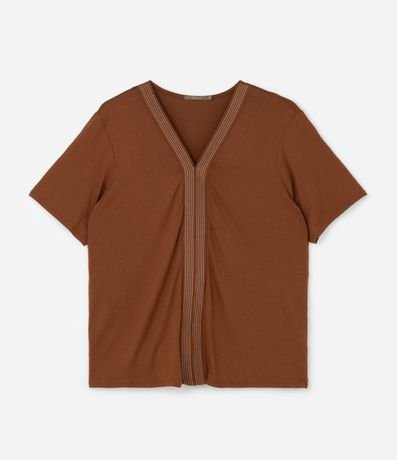 Blusa em Viscocrepe com Decote V em Retilínea Curve & Plus Size