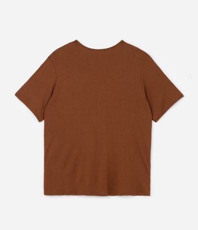 Blusa confeccionada em viscocrepe sem estampa. A peça tem mangas curtas e decote V com retilínea que se alonga até a barra.