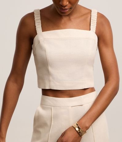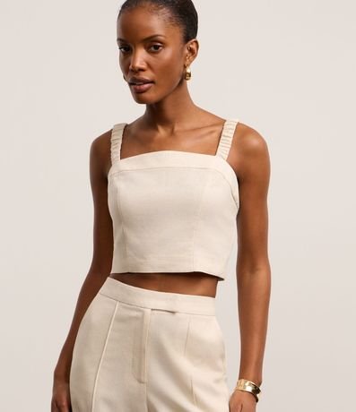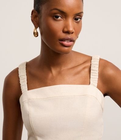 Ref: Blusa feminina confeccionada em viscose mais sustentável com boas práticas ambientais. Possui decote quadrado, alças largas, franzidas, lastex, sem estampa e alfaiatada.