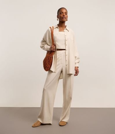 O viscolinho é uma mistura de linho e viscose. O material proporciona toque macio, caimento fluido e um visual sofisticado à peça. Além disso, traz conforto e leveza ao look, perfeito para os dias atuais.