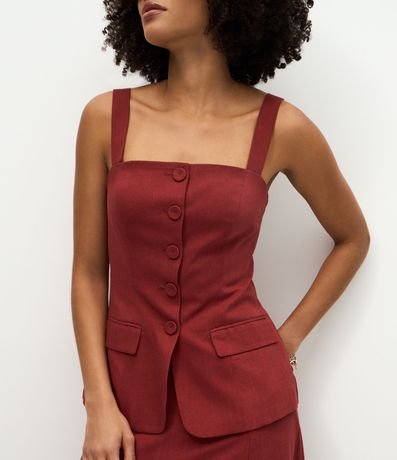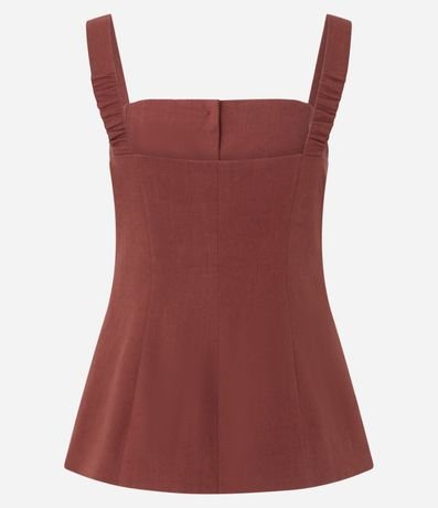 Ref: Blusa feminina em viscolinho confeccionada com viscose mais sustentável. Possui alças largas com franzido, bolsos decorativos e botões frontais.
