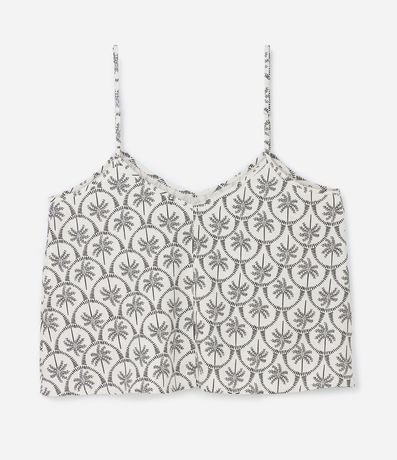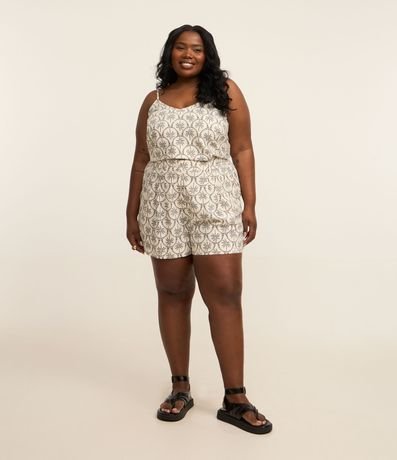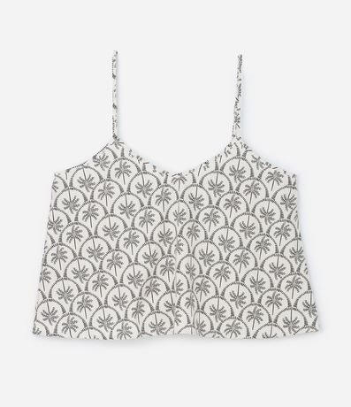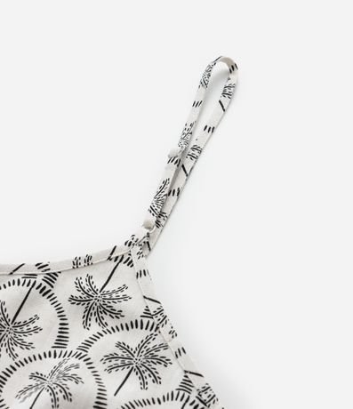 Ref: Blusa feminina Curve & Plus Size confeccionada em viscolinho de viscose certificada, peça com decote em v, alças finas sem ajustes e estampa de coqueiros bicolor.