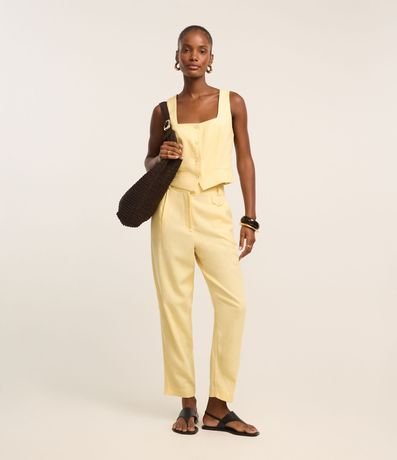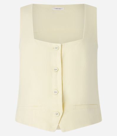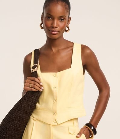 Ref: Blusa sem mangas, confeccionada em viscolinho com 15% de linho, com decote quadrado, botões frontais, peces, bolsos falsos e barra com detalhe em pequeno V. Este produto possui viscose certificada em sua composição, sendo ambientalmente mais responsável.