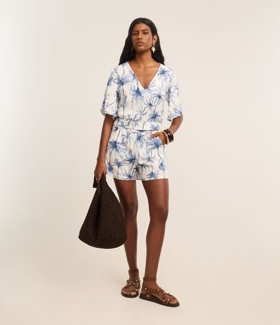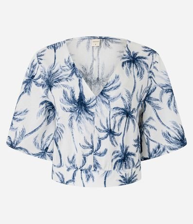 Blusa em Viscolinho com Estampa Coqueiros e Decote V