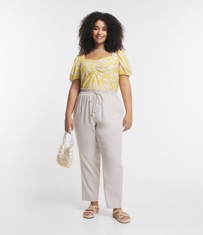 O viscolinho é uma mistura de linho e viscose. O material proporciona toque macio, caimento fluido e um visual sofisticado à peça. Além disso, traz conforto e leveza ao look, perfeito para os dias atuais.
