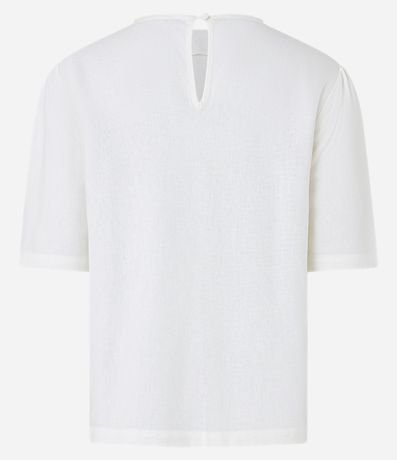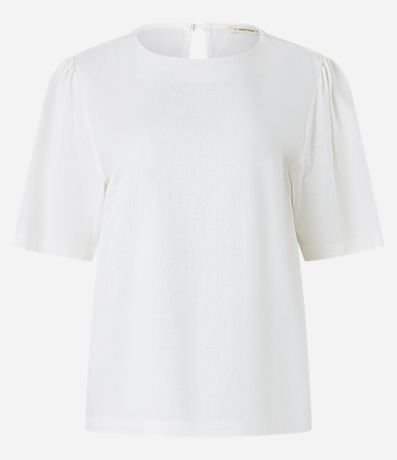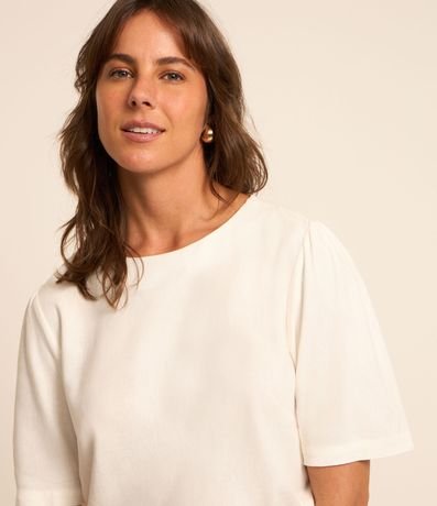 Ref: Blusa feminina, confeccionada em viscolinho, com gola redonda, mangas curtas bufantes e superfície sem estampa.