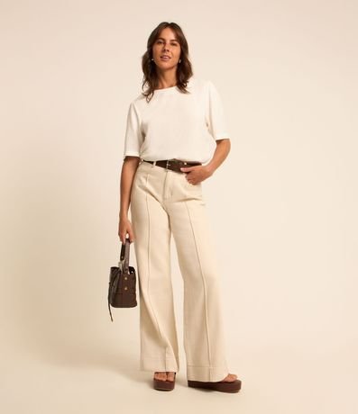 O viscolinho é uma mistura de linho e viscose. O material proporciona toque macio, caimento fluido e um visual sofisticado à peça. Além disso, traz conforto e leveza ao look, perfeito para os dias atuais.